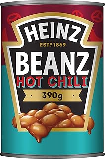 Heinz Beanz Baked Beans Hot Chili, Gebackene Bohnen, Dose, 1er Pack (1 x 390 g)