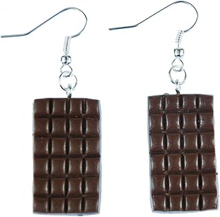 Schokolade Ohrringe Hänger Vollmilch Tafel Schokoladentafel 3D braun - Handmade Modeschmuck I Ohrhänger Ohrschmuck versilbert