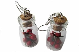 Kirschen im Glas Ohrringe Hänger Frucht Kirsche Cherry Vorratsglas - Handmade Modeschmuck I Ohrhänger Ohrschmuck versilbert