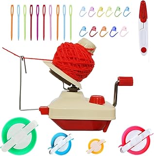 KNEWMART Bobinadora de Hilo,Kit de bobinado de Lana de Punto Con Tablero de Bobina,4pcs Pompom Maker + 10Pcs Marcadores de Punto de tejer + 10Pcs Agujas de plástico+ 1Pcs Tijeras (26)