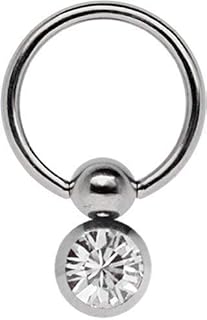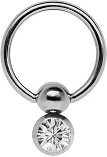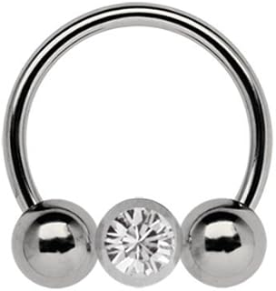 Brustpiercing Titan Gewindering 1,2 x 12 mm mit 2 Kugeln und klarer Stein-Klemmkugel