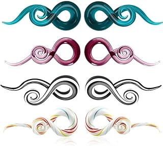 MQSS 4 Paar Dehnstab Plug Spirale Glas Dehnschnecke Dehner Expander Taper Tunnel Plugset Dehnung Ohrpiercing Dehn Plug Piercing 0G: 8mm