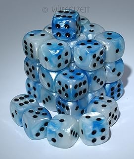 Würfelzeit 7214 - Würfel w6 12 mm, Alyen Weiss-blau m/schwarz (32er Set in Klarsichtbox)