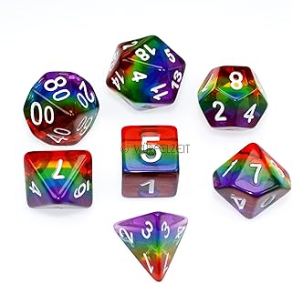 Toys & Games Würfelzeit - der etwas andere Würfelshop! Ob Gesellschaftspiel, tabletop oder Rollenspiel - Würfelfans finden bei uns ein ausgesuchtes Sortiment vom w3 bis w100. Würfelzeit Polyset Flockki grün m/weiss (7 Würfel) Farbe: Klar mit grünem Farbwirbel und weisser Schrift. Beschriftung: w4 (Zahlen 1-4), w6 (Zahlen 1-6), w8 (Zahlen 1-8