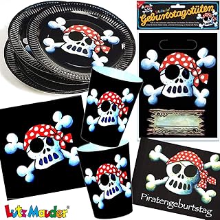 86-teiliges PIRATEN PARTY SET für Kindergeburtstag: Teller, Becher, Servietten, Einladungen, Partytüten, Luftballons | Kinder Seeräuber