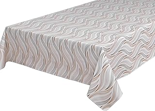 BEAUTEX Wachstuch Tischdecke abwischbar rutschfest mit Kettelung Eckig Rund, Motiv Farbe Größe wählbar (Wellen Beige, Eckig 110x140 cm)
