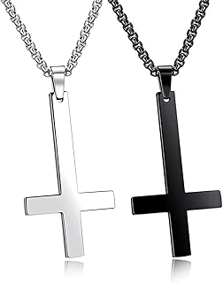 Schmuck Halskette mit verkehrt Kreuz Anhänger Basic Religion für Herren Männer Damen Frauen Kreuz Kette Kreuzanhänger aus Edelstahl 55 cm lang Schwarz Gold Silberfarben