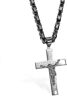 Schmuck Edelstahl Kreuz Rood Jesus Kruzifix Bibel Gebet Englisch Anhänger mit 65cm Königskette Kette, Retro Halskette für Herren, Silber Gold Schwarz, mit kostenlos Gravur