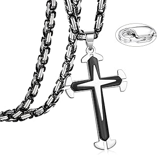 Kreuz Kette Edelstahl Halskette für Herren Männer Silber/Gold/Schwarz Vintage Polierte Kreuz Anhänger mit 61cm Kette Christlicher Schmuck