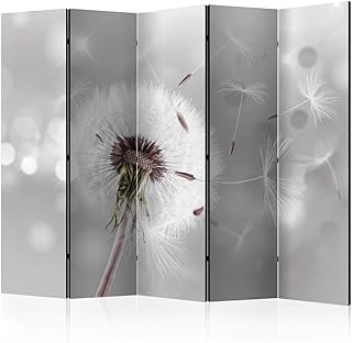 decomonkey Paravent Raumteiler XXL Einseitig Pusteblume 225x172 cm 5 TLG. Trennwand Vlies Leinwand Raumtrenner Sichtschutz spanische Wand Blickdicht Textile Haptik Weiß Grau