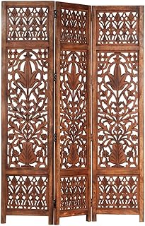 vidaXL Mangoholz Massiv Raumteiler 3-TLG. Handgeschnitzt Klappbar Trennwand Paravent Umkleide Sichtschutz Spanische Wand Braun 120x165cm