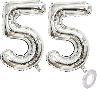 40 Zoll 2 Luftballons Zahle 55.Silber Geburtstag XXL 100cm Riesen Folienballon Zahlenballon 55 Silber Nummer Folienballon 55,Ballon Zahl 55 Heliumballon Luftballon 55 für Geburtstag Party Deko