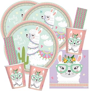 Amscan/Hobbyfun 64-teiliges Party-Set Lama - Teller Becher Servietten Trinkhalme für 16 Kinder