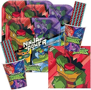 Amscan/Hobbyfun 64-teiliges Party-Set Rise of Teenage Mutant Ninja Turtles - Teller Becher Servietten Trinkhalme für 16 Kinder