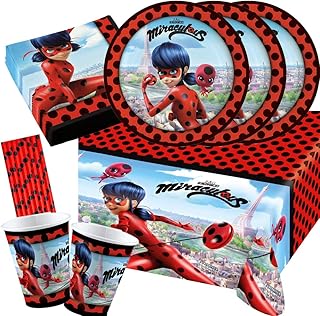 Amscan/Hobbyfun 45-teiliges Party-Set - Miraculous Ladybug Teller Becher Servietten Tischdecke + Trinkhalme für 8 Kinder