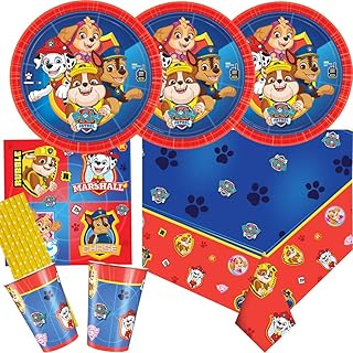 Amscan/Hobbyfun 41-teiliges Party-Set Paw Patrol - Teller Becher Servietten Tischdecke Trinkhalme für 8 Kinder