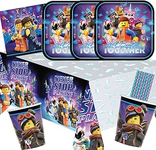 Amscan/Hobbyfun 41-teiliges Party-Set Lego Movie 2 - Teller Becher Servietten Tischdecke Trinkhalme blau/lila für 8 Kinder