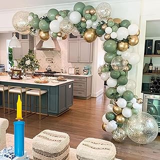 Luftballon Girlande Grün, 152 Stück Luftballons Retro Grün Gold Weiß Konfetti Ballons Arch Kit Latex Helium Ballons Deko für Babyparty, Hochzeit Mädchen Jungen Kinder Geburtstag Party Dekoration