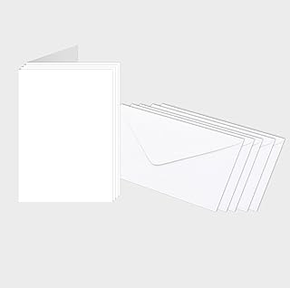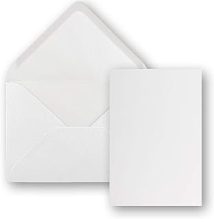 50 Karten Sets mit Umschlägen - Kristallweiß (Weiß) - DIN A6 - 10,5 x 14,8 mm - Einzelkarten ohne Falz - für Einladungen, Grußkarten und Fotos