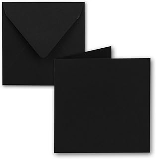 Quadratisches Falt-Karten-Set - 15 x 15 cm - mit Brief-Umschlägen - Schwarz - 25 Stück - Nassklebung - für Grußkarten, Einladungen & mehr
