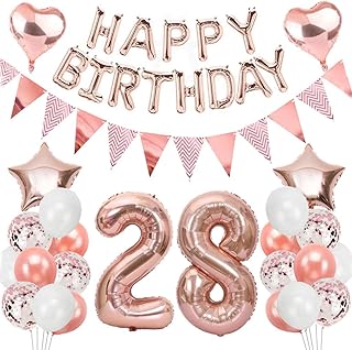 Feelairy 28. Geburtstag Dekoration Rosegold 28th Geburtstag Party Deko Set, Ballons Happy Birthday Girlande, Riesen Luftballons Zahl 28, Folienballon Herz, 28. Geburtstagsdeko für Mädchen Damen