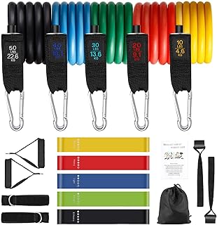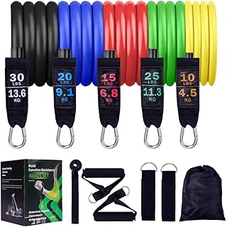 IGCXJ Resistance Bands Widerstandsband Set, 11 Teiliges Übungswiderstandsbänder Fitnessbänder Stapelbar bis zu 100lbs mit Türanker, Griffen, Fußschlaufen, für Fitness, Physiotherapie, Yoga, Heim : Amazon.de: Sport & Freizeit Stapelbare Widerstandsbänder - Diese 5 stapelbaren fitnessband mit griff haben unterschiedliche Stufen: Gelb (10 lb), Grün (15 lb), Rot (20 lb), Blau (25 lb), Schwarz (30 lb). Es ist ideal zur Verbesserung von Kraft und Beweglichkeit. Alle Übungsbänder haben eine Länge von 120 cm / 47,24 Zoll. Sie können allein oder in Kombination mit Stärken von 10 bis 100 Pfund verwendet werden.