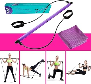 AKA Sports Gear Tragbares Yoga-/Pilates-Bar-Set mit Widerstandsband, für Yoga, Pilates, Ganzkörper-Workout, Stretch, Drehen, Sit-Up-Bar, Widerstandsband
