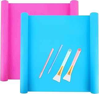 Outivity 2 Pack A3 Große Silikonplatte für das Handwerk mit 2 PCS Silikon Sühr Stäbchen und 2 PCS Silikon Bürsten, Schmuck Guss Epoxidharz Formen Matte Mehrzweck Silikon Tischset für die Herstellung