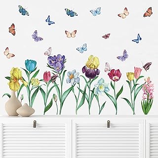 ANHUIB 30Stück Bunt Garten Blume Wandtattoo,Wandaufkleber Blumen für Mädchen Schlafzimmer,Blätter Wandaufkleber Kinderzimmer Mädche,Aquarell Pflanzen und Schmetterlinge Wandsticker für Wohnzimmer Deko