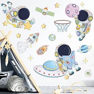 Wandtattoo Kinderzimmer Wandsticker Selbstklebend Wandaufkleber Wohnzimmer schlafzimmer Baby 104x90 cm (BxH) Heißluftballon Junge Babyzimmer Astronaut Star Air Sterne Blumen