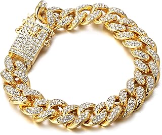 Diamant Kubanische Kette für Damen Mädchen,13.5MM 18 Karat Echtvergoldung/Platin Weißgold Überzogen Halsband Halskette Armband Iced Out,Volle Cz Diamantschliff-Stiftset,mit Geschenkbox