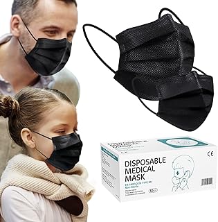 50 Stück Mundschutz Op Masken Bunt Kinder Mund-Nasen-Masken Schwarze Masken Mundschutzmasken Einweg Weihnachtsmasken Mit Motiv 3 Lagig Atmungsaktiv Bandana Halstuch FüR Junge Mädchen