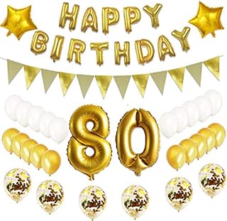 Oumezon 80.Geburtstag Dekoration Luftballons Gold Set ,80 Geburtstagsdeko Gold Set mädchen Herren Damen Junge, 80 Geburtstag Dekoration ,Happy Birthday Ballon Deko 80 Deko Folienballons
