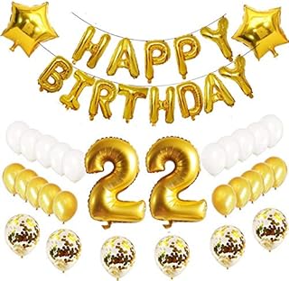 Oumezon 22.Geburtstag Dekoration Luftballons Gold Set,22 Geburtstagsdeko Gold Set mädchen Herren Damen Junge, 22 Geburtstag Dekoration,Happy Birthday Ballon Deko 22 Deko Folienballons