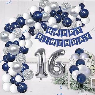 16. Geburtstag Junge,Luftballon Deko 16 Geburtstag Junge,Geburtstagsdeko 16 Junge,Silber Blau Luftballons Junge Deko zum 16 Geburtstag,Tischdecke Happy Birthday Girlande Torten Deko
